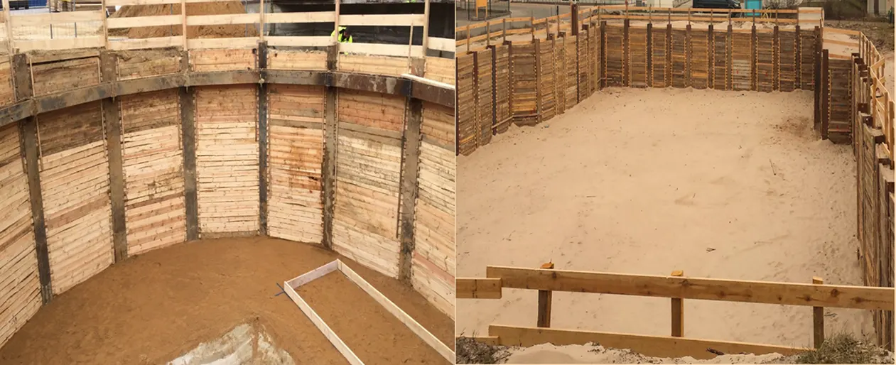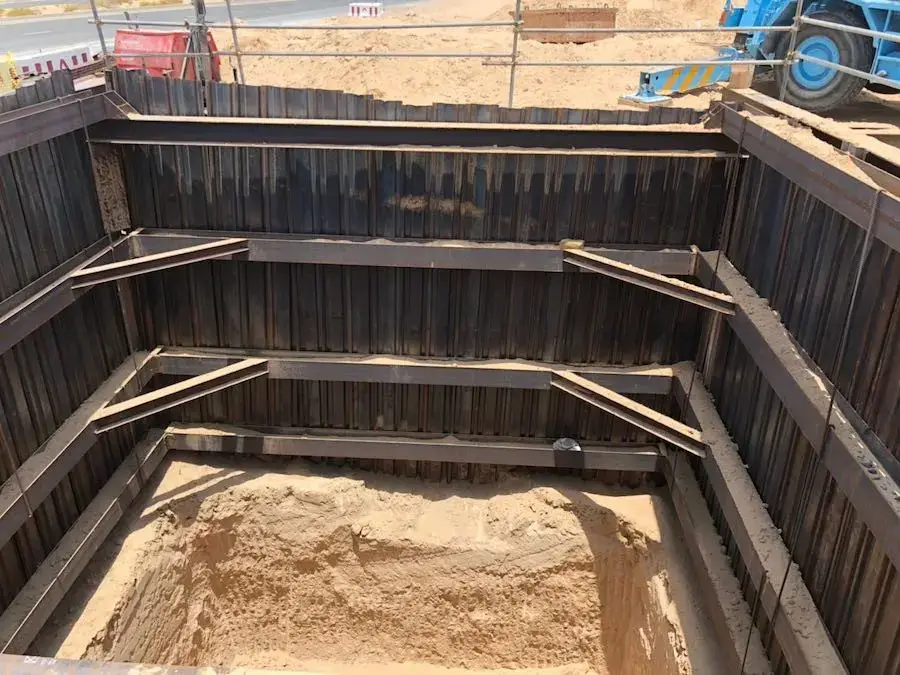 Steel sheet pile wall consists of driven steel sheets interlocked together by joints, to form a continuous wall with a series of closely fitting joints. The sheet piles are usually used when it is required to retain not only soil pressure but also water. It is extensively used for retaining soils that are below the water table and would flow if excavated, additionally, sheet piling is very useful in case of very soft clays. The sheet piles have lightweight with maximum strength and durability. It is usually driven into the ground by using Vibro-hammers and it is extracted in the same way after completing the construction.
